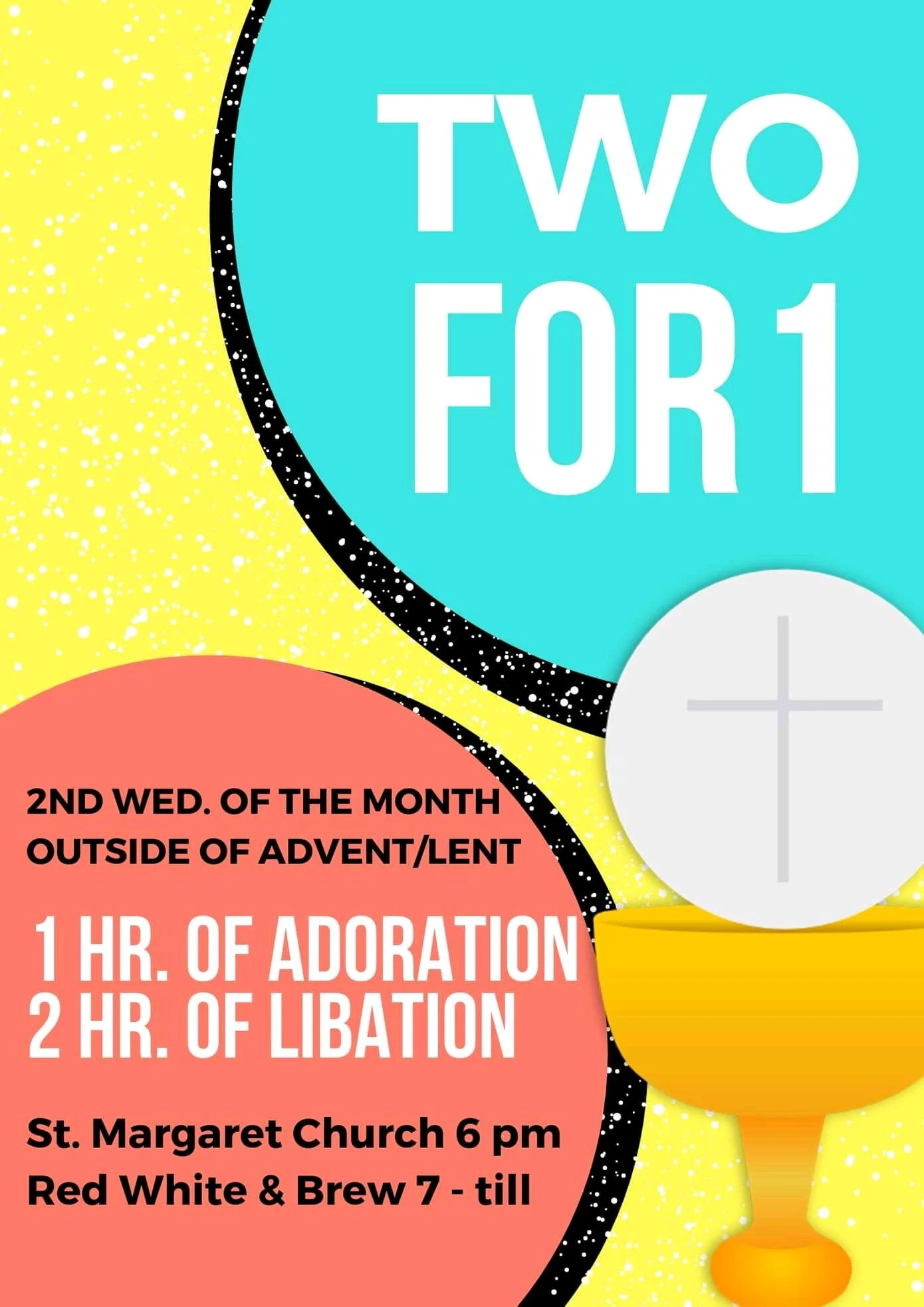 On the second Wednesday of the Month, we will gather for an hour of adoration and then head to Red, White, & Brew in downton Hammond for fellowship.